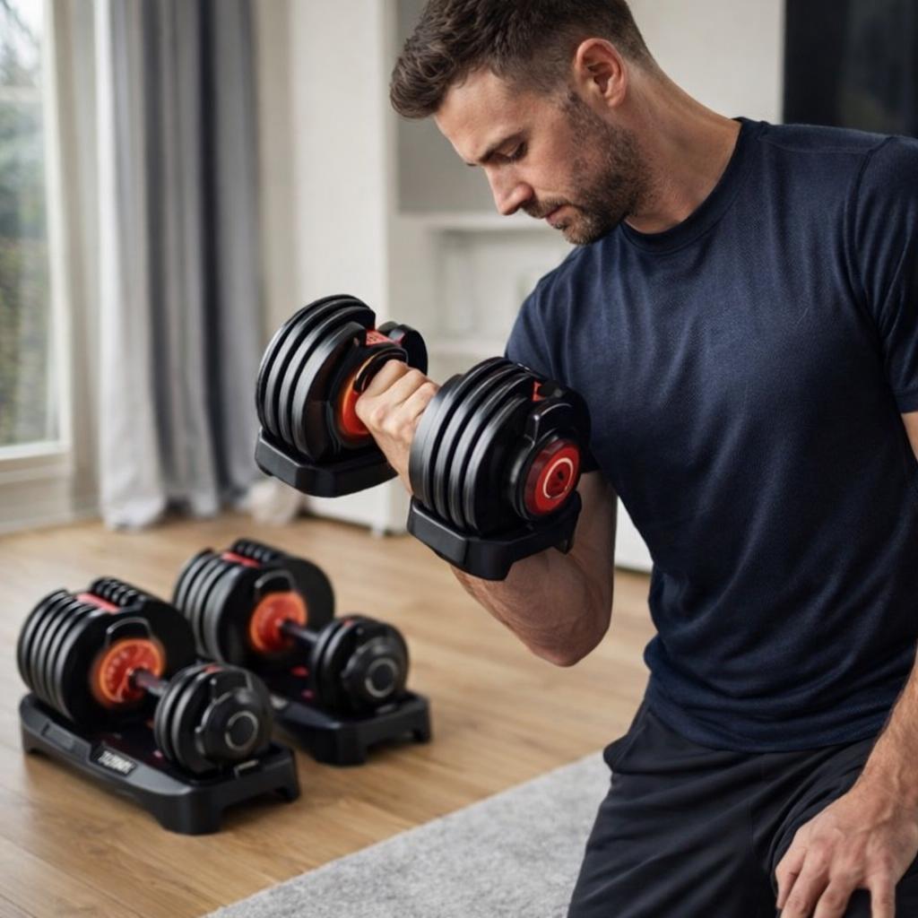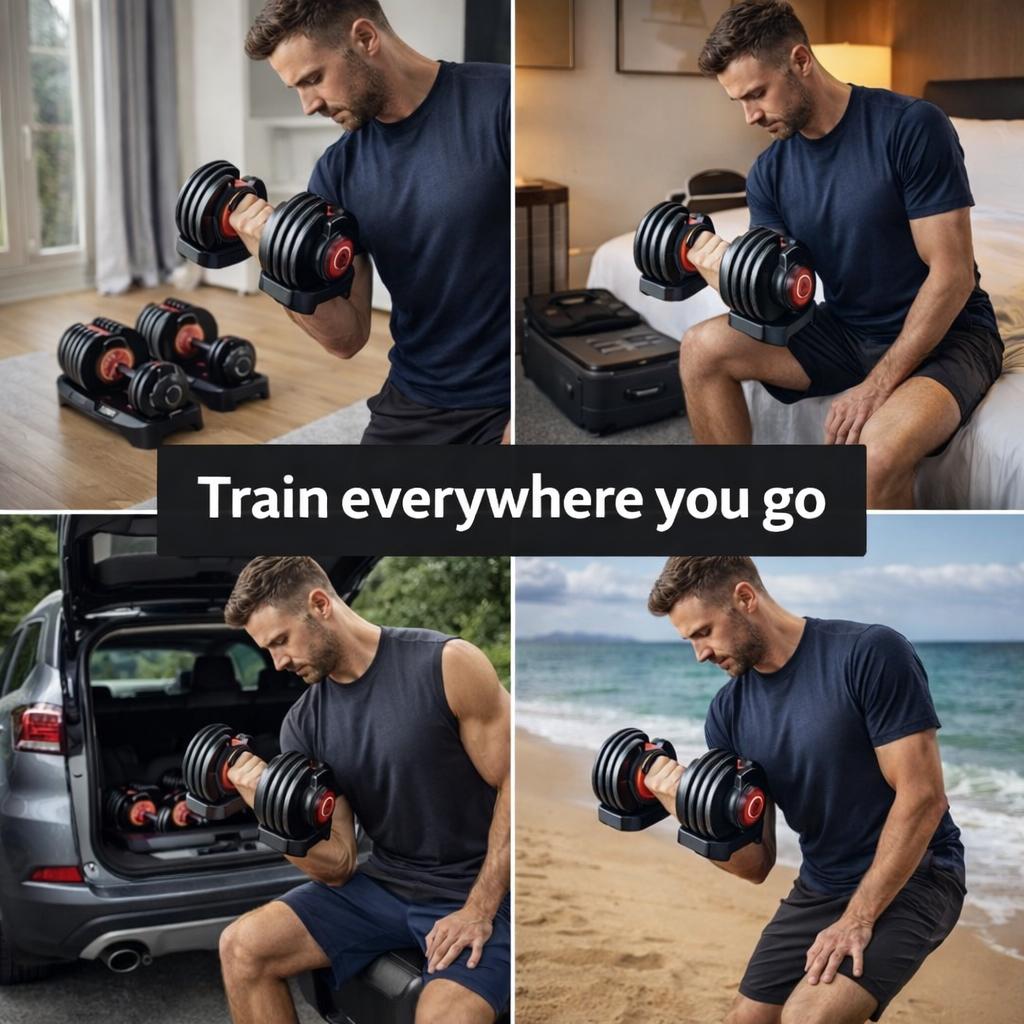 Replaces multiple dumbbells in one compact setup, ideal for home gyms or bedrooms.