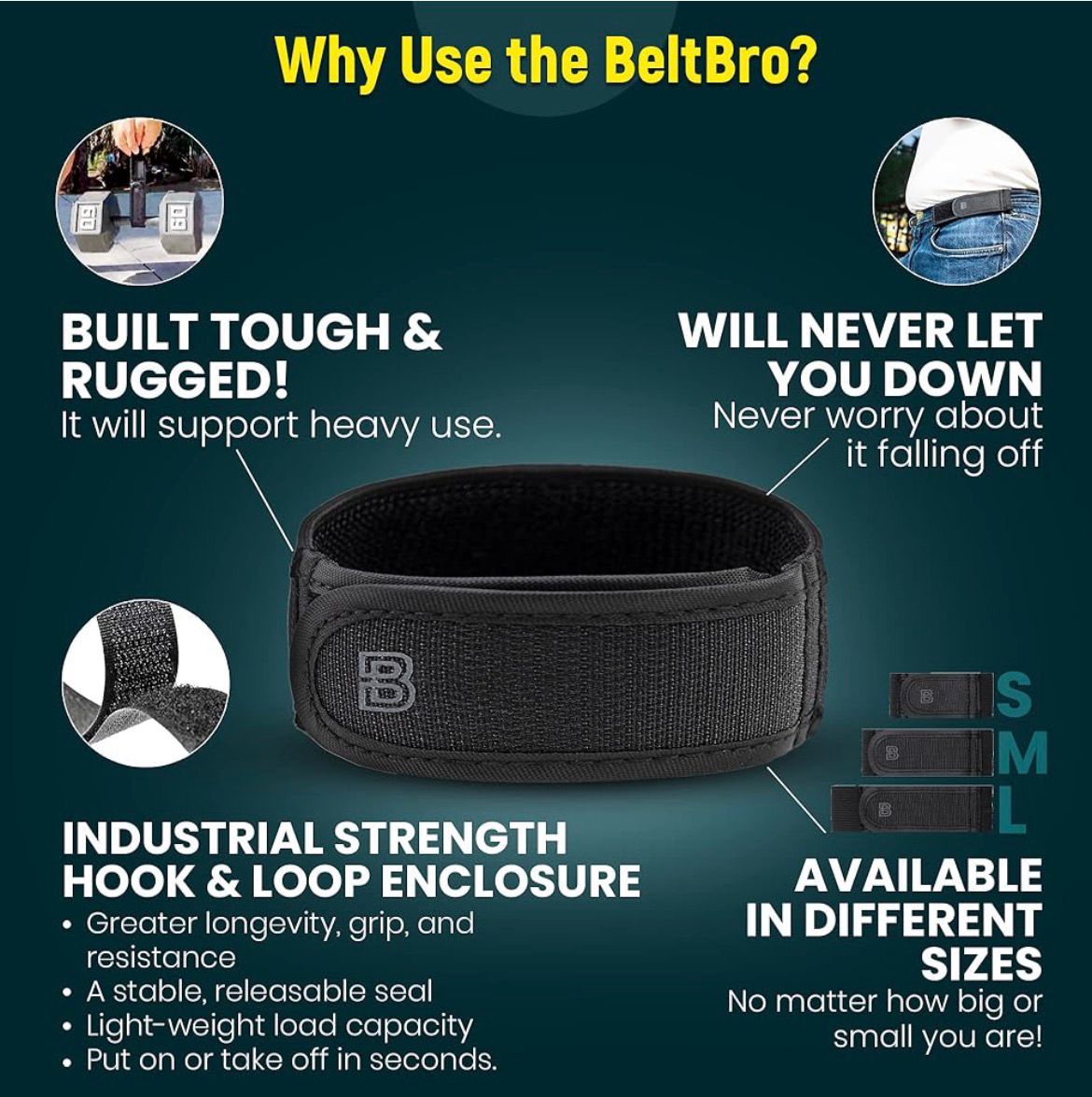 It attaches to belt loops and adjusts with elastic tension to keep your pants comfortably in place all day.